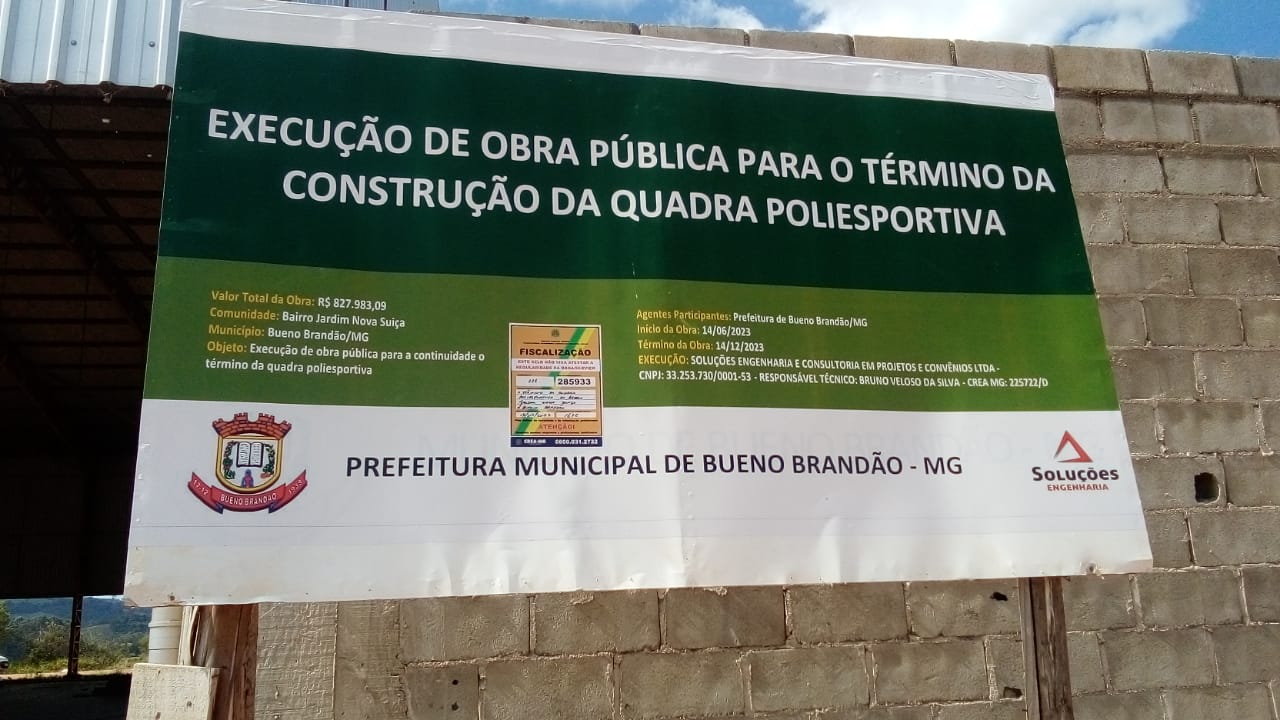 Execução de obra pública para o término da construção da Quadra Poliesportiva.